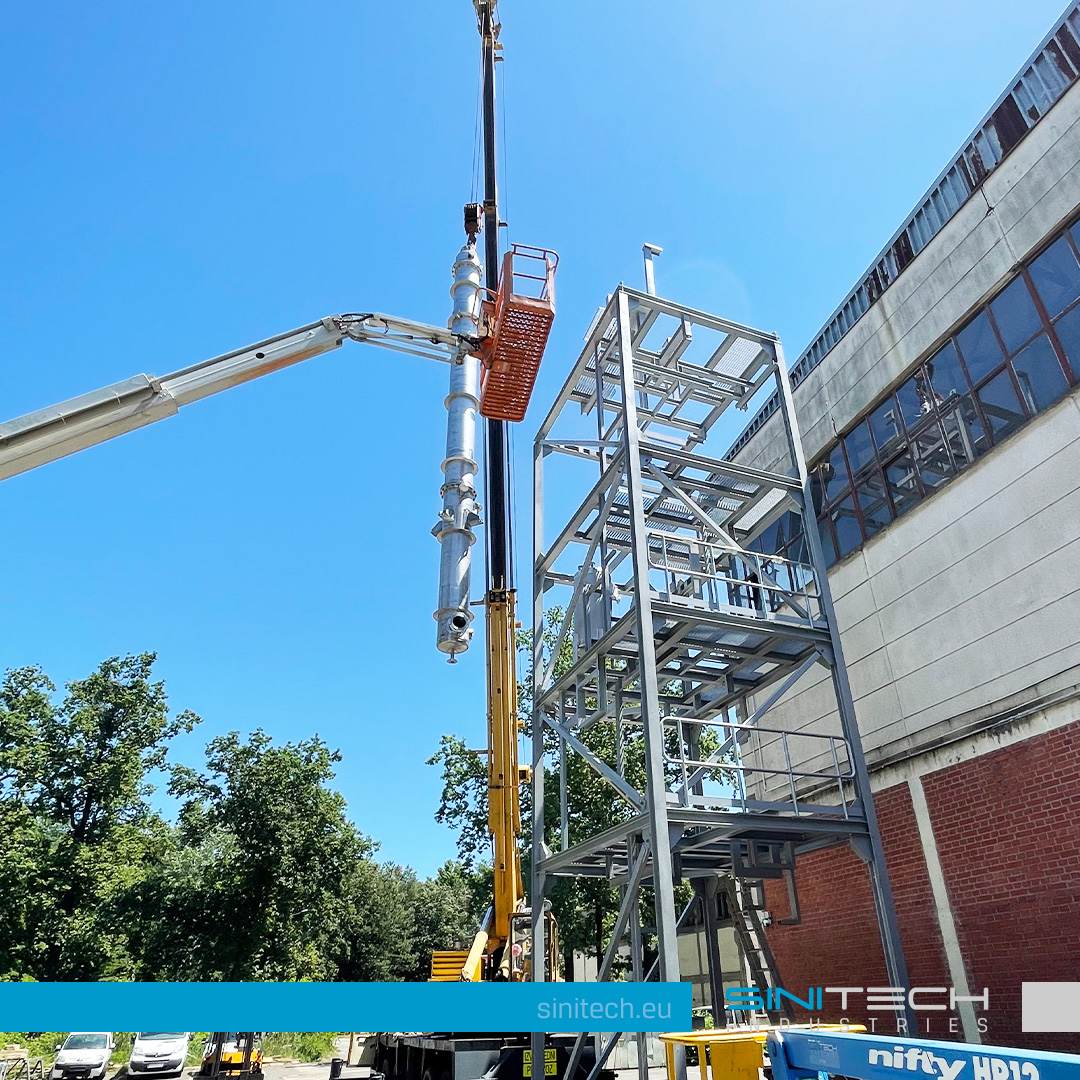 Glavni materijal od kojeg je izrađena procesna oprema je nehrđajuči čelik AISI316, sa ukupnom visinom skida od cca. 20 m.